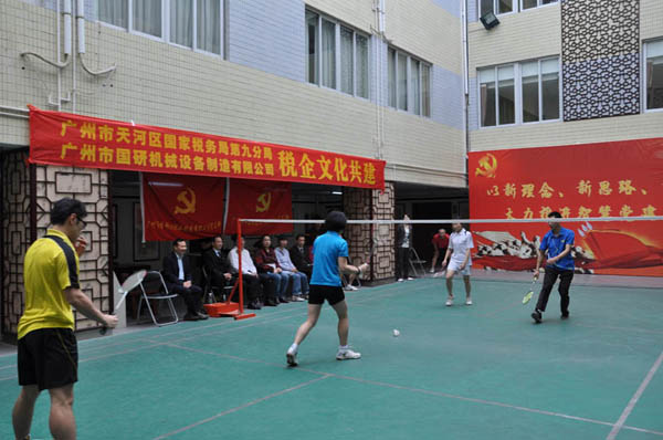 天河區(qū)國稅局紀(jì)檢組長黃捷洪、九分局葉潔麗局長、我司黨支部書記、副總經(jīng)理王聲躍等領(lǐng)導(dǎo),及稅企雙方共三十多人參加了此次活動(dòng)。活動(dòng)內(nèi)容包括重溫入黨誓詞、乒乓球和羽毛球友誼賽等。自今年三月“稅企文化共建”活動(dòng)開展以來,我司和區(qū)國稅局以文化共建為平臺(tái),舉行了一系列互動(dòng)活動(dòng),形成了以共建促和諧,以共建促發(fā)展,以共建促共贏的良好局面。