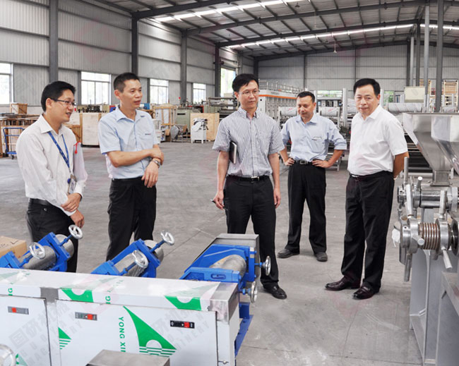 李局長(zhǎng)一行來(lái)到公司就深入車(chē)間了解生產(chǎn)情況,在河粉機(jī)裝配車(chē)間李局長(zhǎng)詳細(xì)詢問(wèn)了河粉機(jī)的功能原理和價(jià)格,當(dāng)?shù)弥獓?guó)研牌河粉機(jī)占領(lǐng)了國(guó)內(nèi)主要市場(chǎng)時(shí)十分高興。李局長(zhǎng)一行還在公司黨支部活動(dòng)室觀看了廣州電視臺(tái)播出的報(bào)道我司開(kāi)展黨建工作的《紅棉璀璨》專(zhuān)題節(jié)目,隨后開(kāi)展了討論,對(duì)我司黨建工作開(kāi)展的有聲有色給予了高度評(píng)價(jià)。